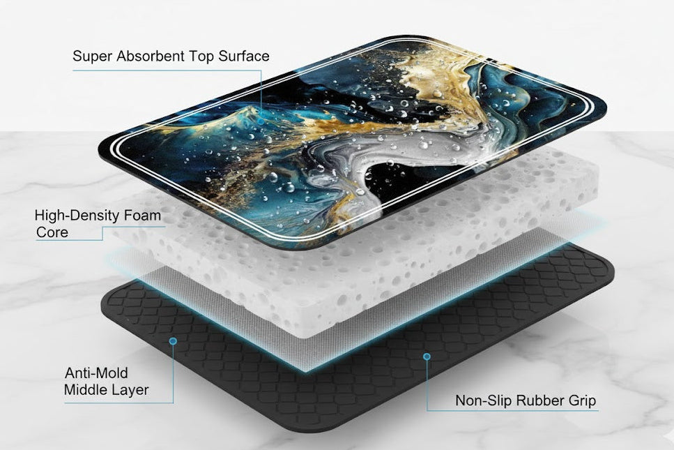Yes. CozyMat™ is designed to absorb water the moment it touches the surface, helping keep your sink and stove area dry. This prevents puddles, slippery floors, and repeated wiping throughout the day.